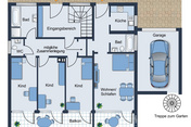 Ein Lagerraum, ein weiteres Gäste-WC sowie eine Waschküche ergänzen das Raumangebot dieser Etage sinnvoll und schaffen zusätzliche Stauraum- und Funktionsflächen ganz nach Ihren Bedürfnissen.